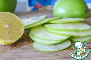 Яблоко нарезать тончайшими слайсами. Сбрызнуть соком второй половины лимона, чтобы предотвратить потемнение.