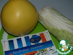 Мой салат с крабовыми палочками, наверное, на Поваренке будет 1001-ым! Похожего салата не нашла, поэтому решила поделиться. Салат чрезвычайно просто готовится. На вкус достаточно приятный. При этом он и легкий и сытный. Если салат подается в "вазочке" из кожуры помело, то очень даже неплохо смотрится на праздничном столе. И, по-моему, такой салат подойдет для романтического ужина.