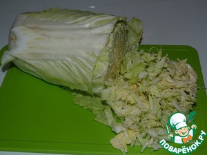 • Китайскую (или пекинскую) капусту тонко нарезать.