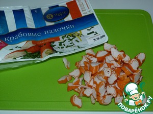 • Нарезать крабовые палочки