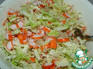 • В отдельной миске смешать помело, капусту и палочки. Заправить майонезом (можно легким). Майонез добавляем в зависимости от вкуса и предпочтения.