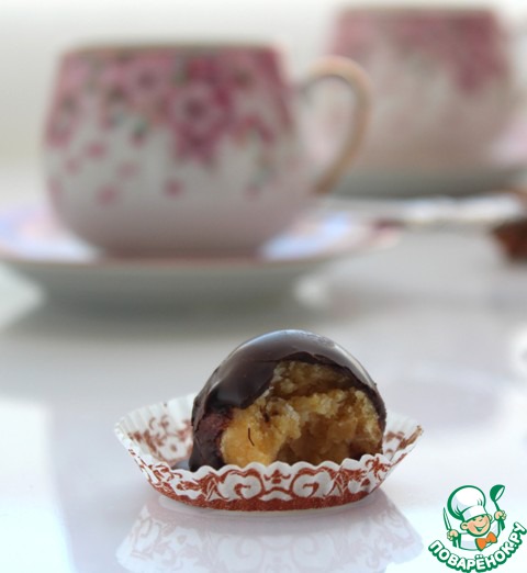 После положенного срока достаем наши конфеты, и вот здесь начинается сладкая жизнь! Нужно умудриться окунуть нашу заготовку в растопленный шоколад, выложить на тарелочку или кулинарную бумагу, успеть лизнуть шоколадный подтёк, взглянуть на счастливое личико помощника, облизывающего пальчики, и отправить плоды своего труда в холодильник до застывания шоколада.