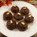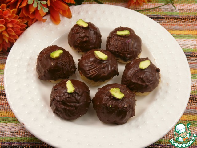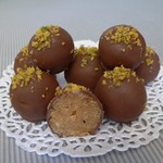 [+5]Печенье брала "Юбилейное", шоколад темный. Конфеты не обмакивала в шоколад, а смазывала кисточкой. Украсила фисташками.