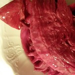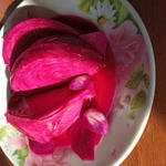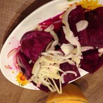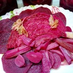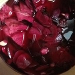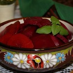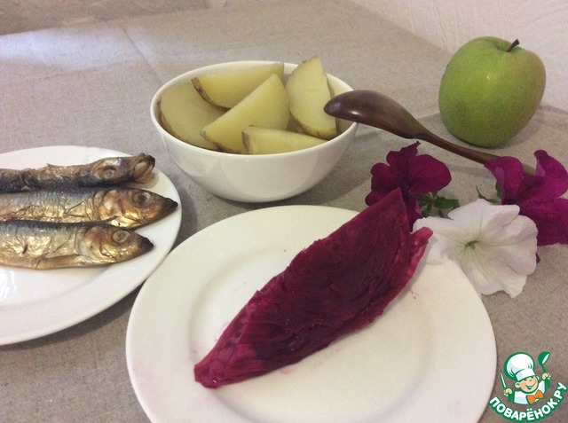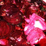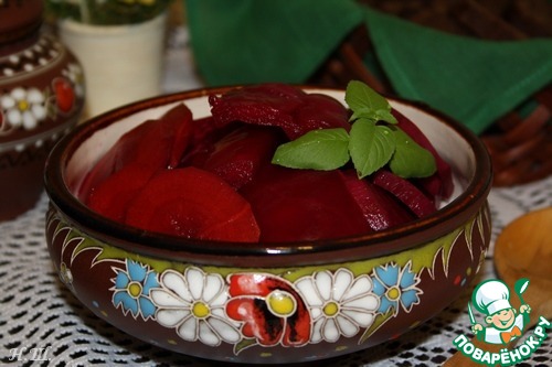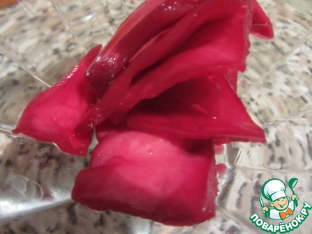 Свеклу режем тонкими кружочками. Я это делаю на тёрке.
