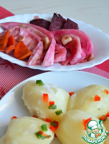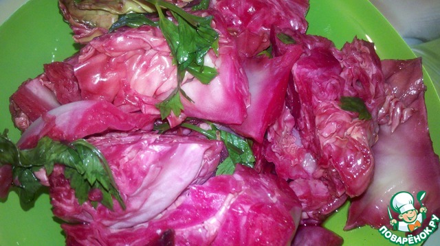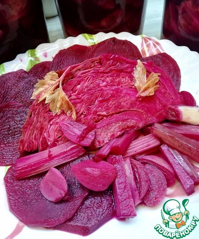 Начнём с выбора овощей. Это важно. Капуста должна быть маленькая. Можно и большую использовать, но она рассыплется, а прелесть этого соленья - в кусочках. Свекла должна быть яркая и сладкая, должна хорошо краситься. Из зелени - ТОЛЬКО сельдерей! Не добавляйте ничего лишнего хотя бы в первый раз.