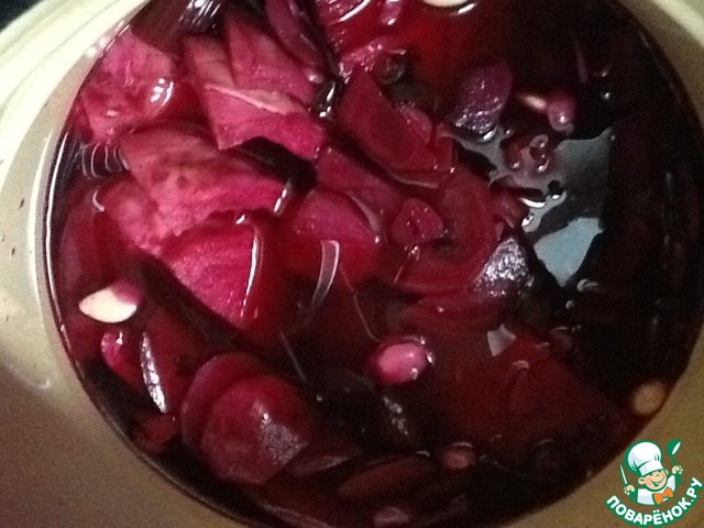 Так заполняем всю кастрюлю. Сверху - свекла.