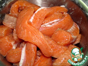 [+5]У меня горбуша, не жирная рыба, поэтому обжарила в муке, чтобы сок не растеряла. Остальное по рецепту.