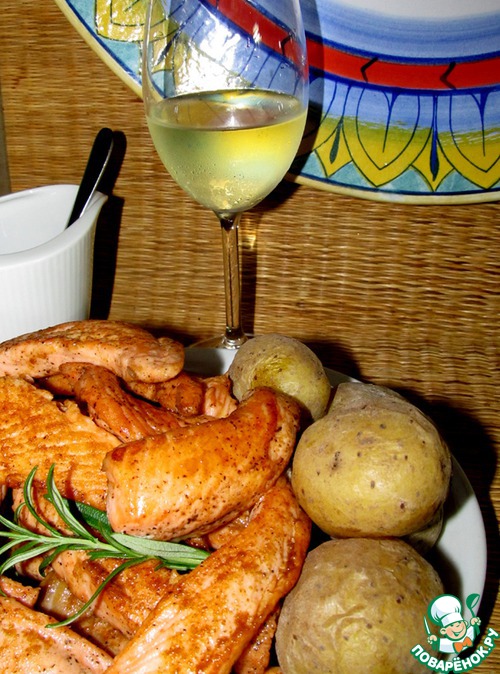 А теперь наливаем в бокал белого вина, поливаем картошку и рыбу соусом... вкушаем... и представляем, что мы на Канарах