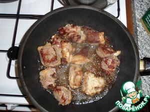 Ну, делу время - потехе час. Не для шкварок же мы это затеяли. Обжариваем на нашем вытопленном сале мясо до появления аппетитной корочки на большом огне. Мясо при обжарке не солим, не перчим.