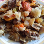 Использовала бараньи рёбрышки, репы не было, а вот баклажаны в холодильнике имелись.