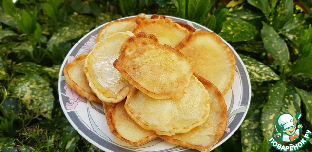 Взбить кислое молоко с яйцом, добавить соль, сахар, соду, ваниль, потом - муку. Консистенция густой сметаны.
