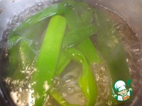 Отварить в течении 1 мин. и сразу положить в ледяную воду, чтобы он не поменял цвет. |