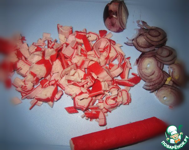 Ингредиенты для «Крабовый салат с авокадо, грушей и сыром»: