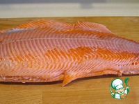 Далее необходимо разделать рыбу на филе. Если останутся косточки - вытащить их пинцетом. Разрезать филе на небольшие кусочки, примерно по 3*3*10 см. У меня вышло 2,2 кг филе. |