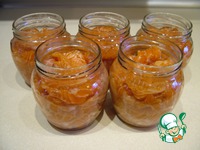 Выкладываем рыбу в банки, немного уплотняем. Мне понадобилось 5 поллитровых банок. |