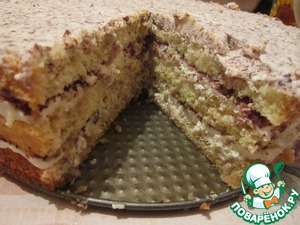 Торт извлечь из формы, смазать кремом 3-й корж, обмазать бока (правда, у меня на них немного не хватило крема!). Поставить на ночь в холодильник.