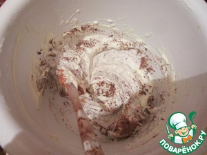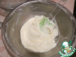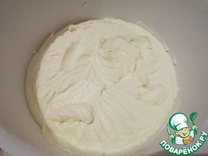 Маскарпоне разминаем лопаткой с половиной сахарной пудры до однородного (не полужидкого!) состояния. По сладости ориентируйтесь на свой вкус! У кого нет возможности купить маскарпоне, возьмите кастрюльку, положите на нее сито, выстланное марлей в 4 слоя, а на него жирную сметану 600 гр (самую вкусную), накройте марлей, положите блюдце, а на него 3-х литровую банку с водой! Оставьте на ночь! Сыворотка стечет, и у вас получится 500 гр сливочного сыра!