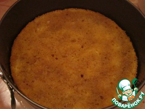 В разъемную форму (у меня 24 см) кладем 1 корж, пропитываем его 1/3 кофейной смеси (если у вас есть кофейный ликер, вы можете смело его добавить)