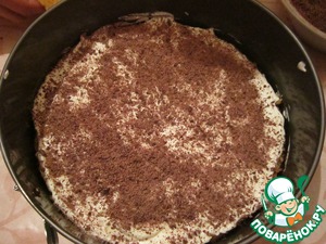 Повторяем со вторым коржом, 2/3 пропитки, крема и шоколада (корж легко придавить).