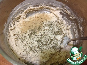 Высыпаем стакан овсяной муки и вымешиваем, добавляем тимьян и мускатный орех, перемешиваем. Постепенно добавляем пшеничную муку. Главное не переборщить, лучше пусть тесто немного липнет к рукам