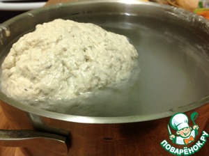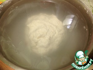 Вымешиваем хорошо тесто и выкладываем его в объемную кастрюлю с ледяной водой