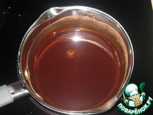 Готовим пропитку. Смешиваем сахар, какао, воду и молотый красный острый перец. Помешивая, варим до полного растворения сахара.