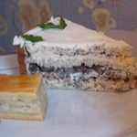 3й слой: тертые вареные яйца, молотые грецкие орехи, соль, перец + 1/3 основы. На 3й слой хлеба.