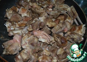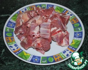 1. Взять 1 лопаточную часть и грудинку. Порубить на небольшие кусочки.