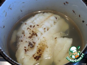 Отварить рыбу в воде (1,5 стакана), приправив солью, перцем и мускатным орехом. Остудить, лишнюю жидкость слить, размять вилочкой.