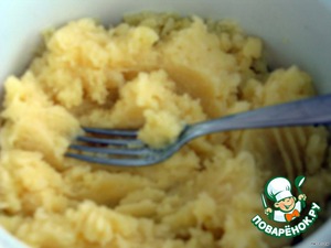 Размять картофель в пюре, добавить масло, яйцо, хорошо перемешать. Приправить по вкусу солью и перцем.