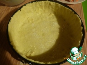 Тесто достаю из холодильника, раскатываю и подгоняю по форме (форму, естественно, с разъемными краями)