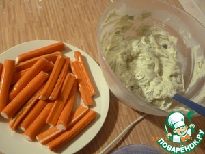 Ингредиенты для «Закусочный чизкейк с крабовыми палочками»: