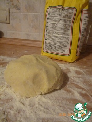 Для начала я замешиваю тесто из масла, муки, 3 ст. л. воды, щепотки соли. ставлю тесто в холодильник на 60 минут (или, если надо быстрее, в морозилку, постоянно проверяя, как схватывается)