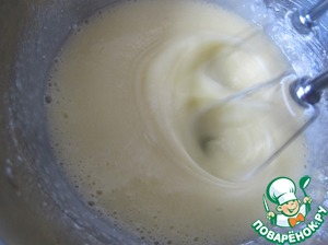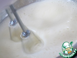 Желтки, яйцо и сахарную пудру смешать электрическим миксером. -