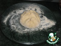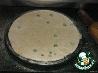 Защипываем края наверх, обмакиваем в муку, переворачиваем защипанным отверстием вниз и начинаем раскатывать, периодически обмакивая в муку, чтоб не прилипало к скалке. |