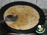 А это готовая продукция - круглая лепёшка равномерной толщины по размеру немного меньше вашей сковородки. |
