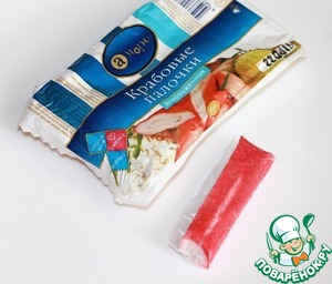 Пока тарталетки остывают приготовим паштет. Для этого нам понадобятся крабовые палочки ТМ "А’море".
