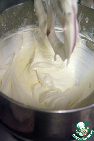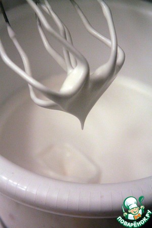 Белки со второй половиной сахара взбиваем до крепких пиков.