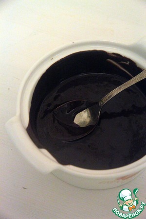 Приготовим крем: смородину измельчите в блендере в пюре, добавьте сахар, красное вино (в оригинальном рецепте ликер "крем-де-кассис"), доведите до кипения, добавьте растопленный шоколад и перемешайте.