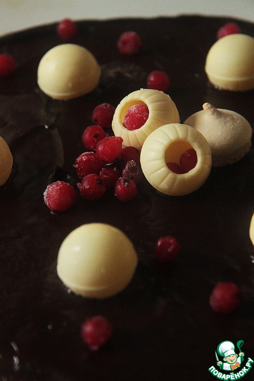 Для украшения вы можете испечь безе (остаются 2 белка), я использовала готовые, несколько шариков белого шоколада и смородину. Вот что из этого получилось.