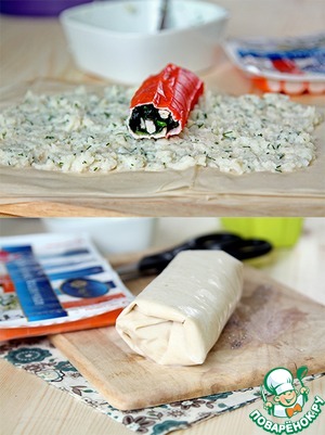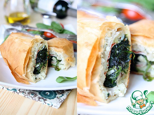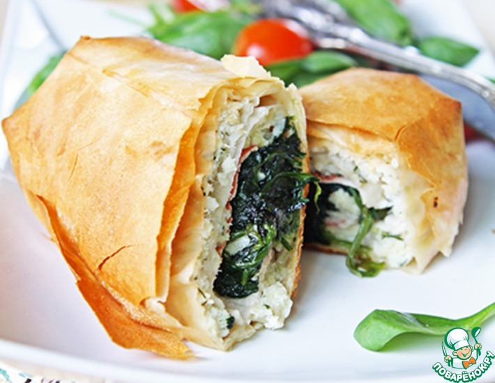 Рецепт «Рыбный рулет со шпинатом в тесте фило»: