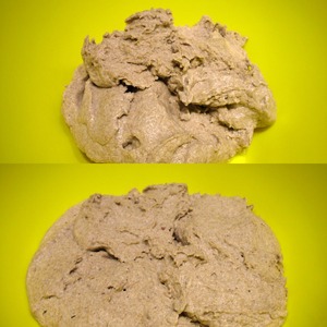 Соединить все ингредиенты в однородную массу. Вымесить тесто в течение примерно 5 минут. Тесто должно быть липкое, пластичное, не крутое. При необходимости добавьте немного воды (или муки) до нужной консистенции.