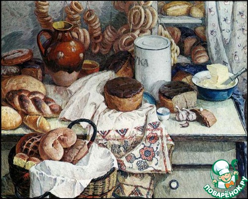 Этот легендарный хлеб стал объектом искусства. Вот, например, картина Дышленко Г. В. "Орловский хлеб" (изначально он был круглым):