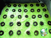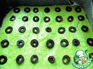 Взбить 2 яйца с щепоткой соли до белого состояния, добавить 1/4ч. л. соды, 2 ст. л. муки, измельченный брокколи и все аккуратно перемешать. Вылить на противень 30x20 см с промасленной бумагой наше тесто-фриттату. Нарезать маслины кружочками и выложить поверх теста. Поставить противень в духовку на 10-15 мин. при температуре 180 градусов. Достать противень из духовки и оставить остужаться.