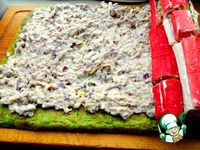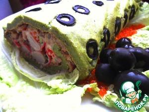 Итальянский рулет с фаршированными крабовыми палочками