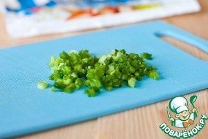 Мелко нарезать зеленый лук.