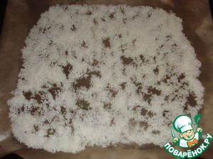 Равномерно распределить кокосовую стружку на бумаге для выпечки.