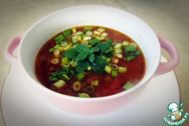 Кстати, это рецепт Баскской кухни. По словам автора, научился делать он такой суп во время праздника Тамбуррада. Размах сан-себастьянского гастрономизма совершенно поразил воображение автора, потому что помимо тысяч общедоступных ресторанов в городе появились только на одну ночь тысячи недоступных. Открылись глухие двери домов, и оказалось, что за каждой есть невидимый остальным ресторан без вывески.