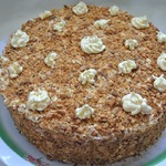 За основу был взят необыкновенно вкусный, но уже ставший привычным торт "Медовик". К нему добавлен не менее вкусный, но страдающий отсутствием теста, и потому слишком бесплотный, торт "Полет". То, что получилось при их соединении, оказалось достойно выделения в самостоятельный торт. За рецепт и подробное описание спасибо Карпатке.