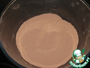Смешать просеянную муку, какао, сахар, соль, разрыхлитель.